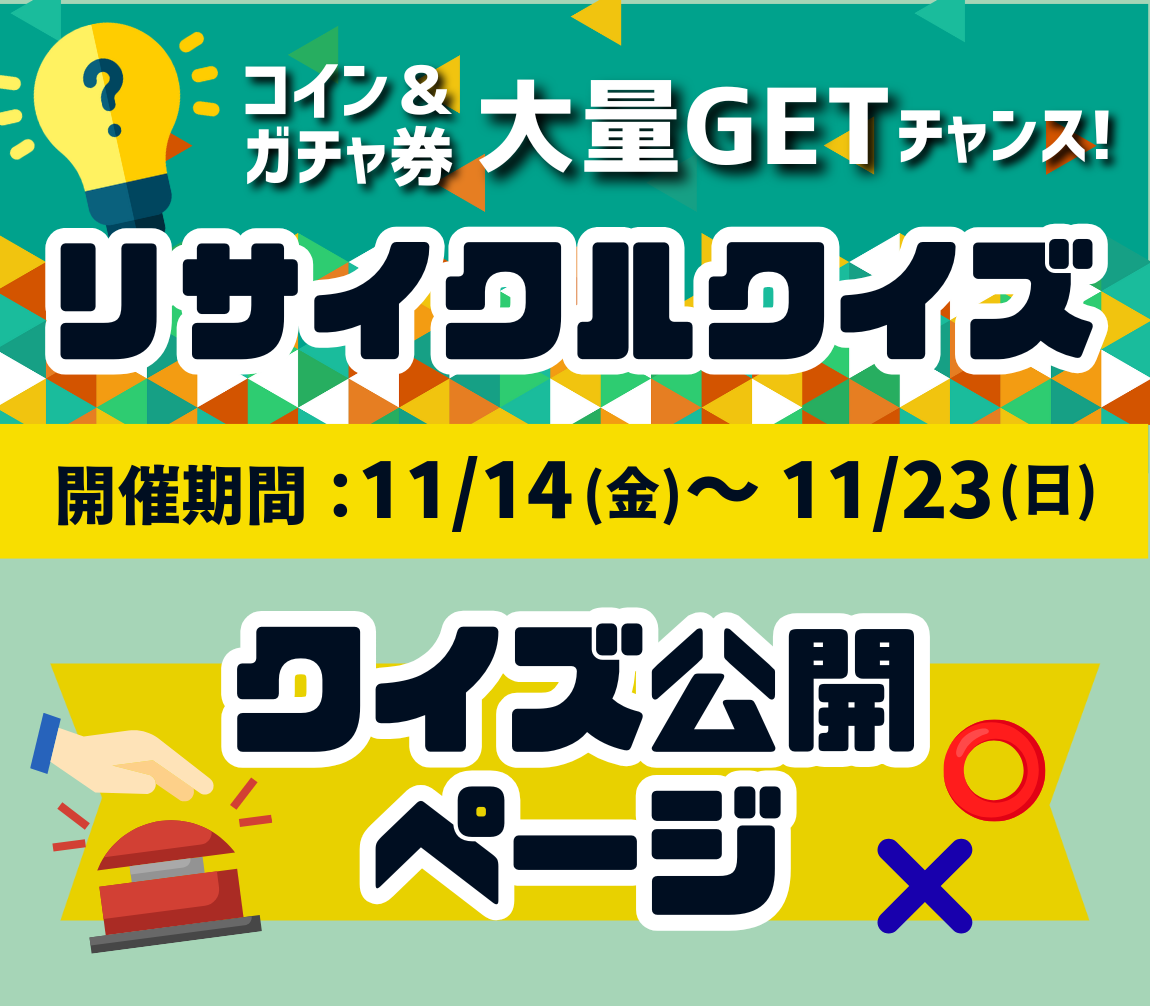 【第4問公開中】コイン&ガチャ券大量GETチャンス!リサイクルクイズ