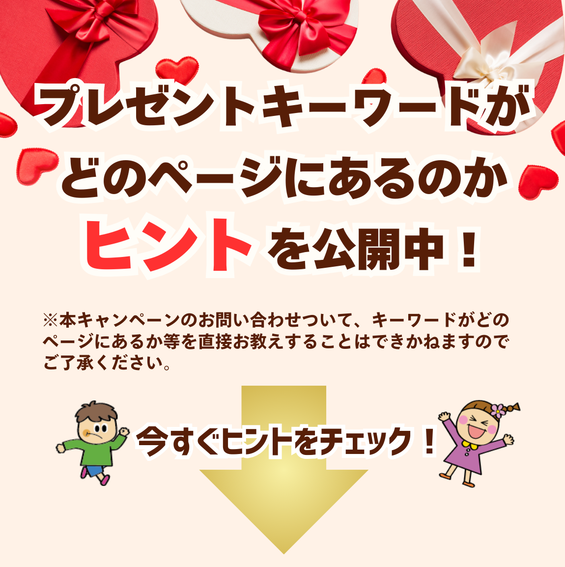 ■ 本キャンペーンのお問い合わせについて、キーワードがどのページにあるか等を直接お教えすることはできかねますのでご了承ください。