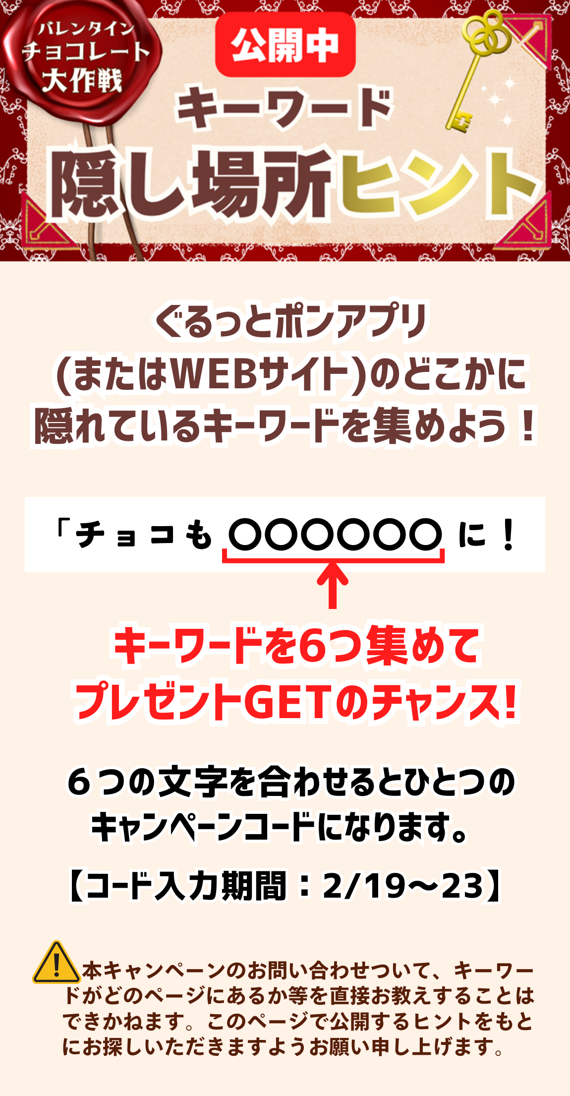 バレンタインチョコレート大作戦 キーワード隠し場所ヒント
