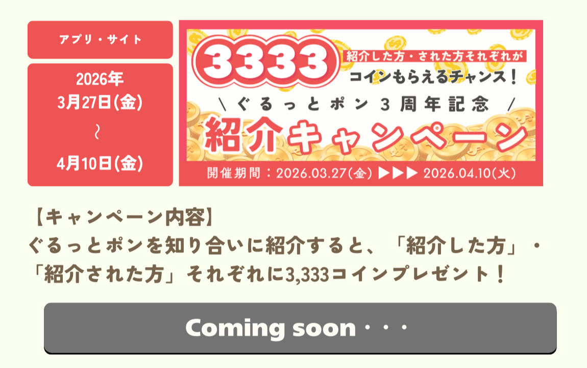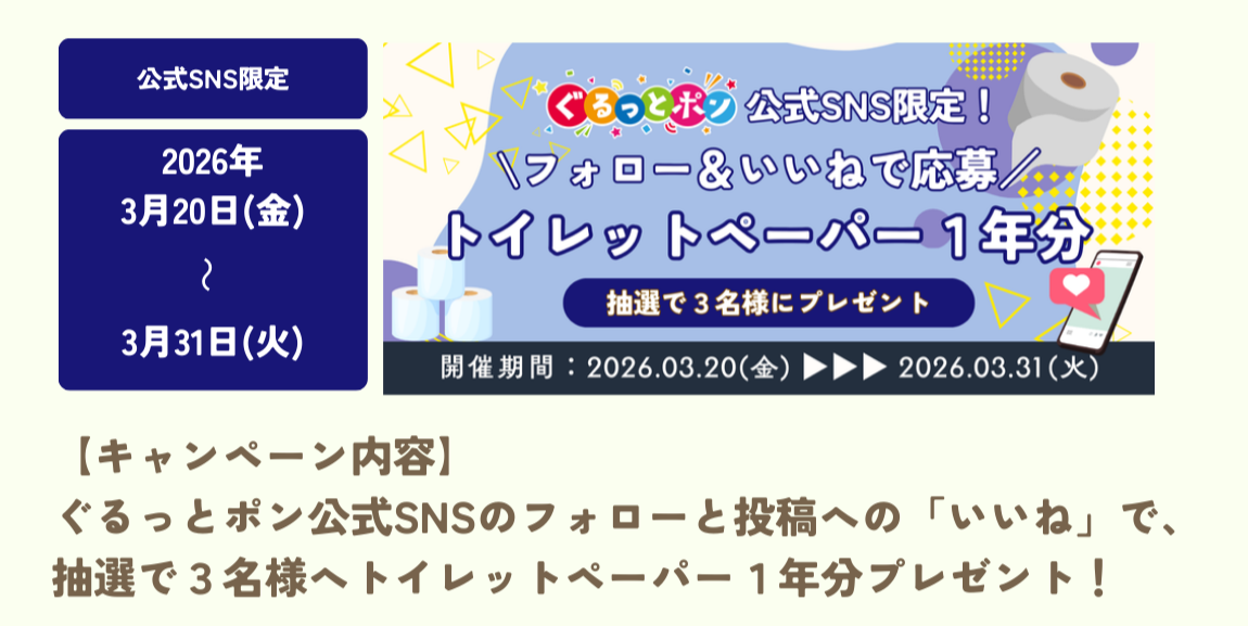 - 🎉ぐるっとポン公式SNS限定CP開催中🎉