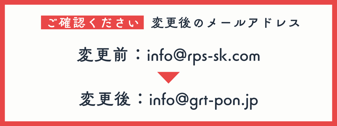 お使いの携帯の設定方法をご確認頂き、「info@rps-sk.com」「info@grt-pon.jp」両方からのメールを受信出来るように設定をお願い致します。